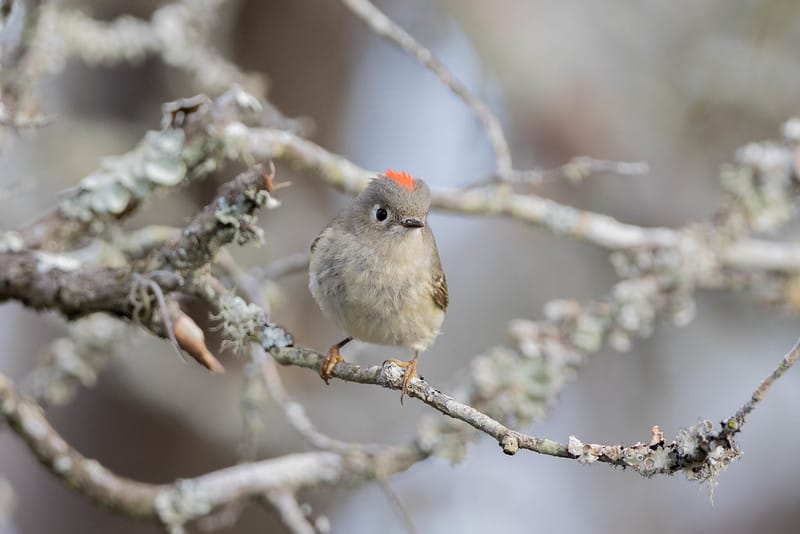 There are two types of kinglets in the United States—the Golden-crowned and Ruby-crowned kinglets. Similar in size and behavior, what really differentiates them (the males, at least) is the color of the firey crown atop their heads.